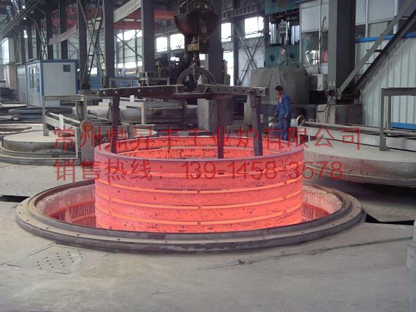 3、经过我们长期的生产经验和用户要求,我们还专门设计了铬锰氮炉口护圈,目的是保护炉口的棉不被工件撞坏,使热量不被流失,从而保证了炉温的均匀性。(这是我们专为大型环件井式炉设计的)